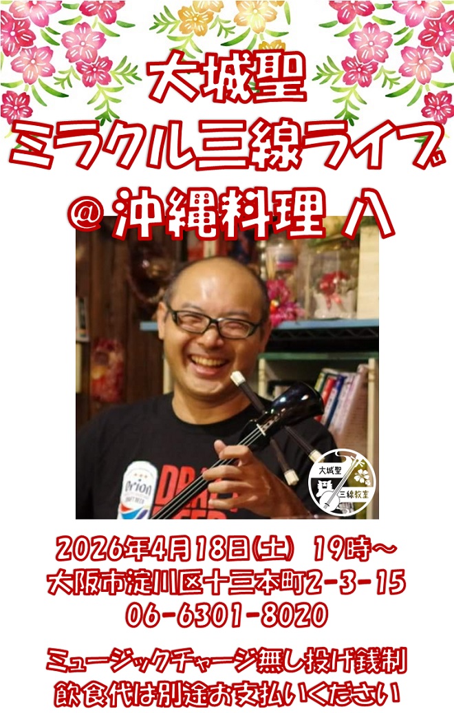 現在、以下の日程でミラクル三線ライブの予定がございます。